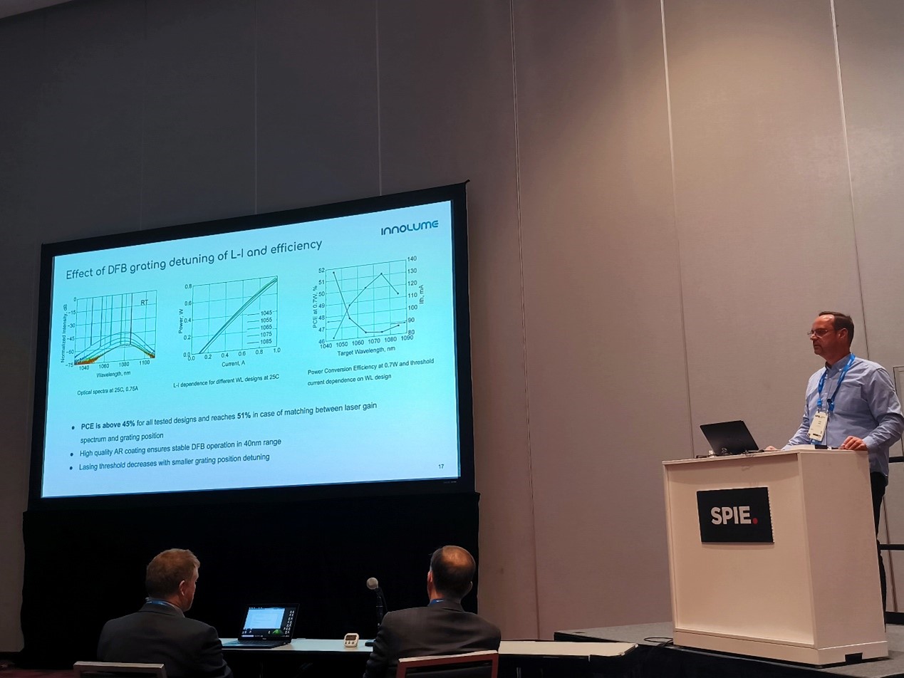 Innolume在SPIE Photonics West 2025上展示了1W 1.06μm的DFB激光器,其效率創(chuàng)歷史新高