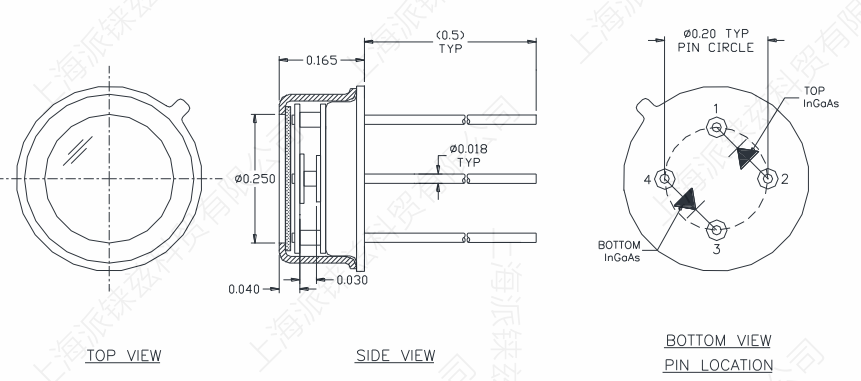 50%截止波長(zhǎng)>2.45um, 典型峰值響應(yīng)度1.45A/W, 極佳的溫度穩(wěn)定性, 減小邊緣效應(yīng)